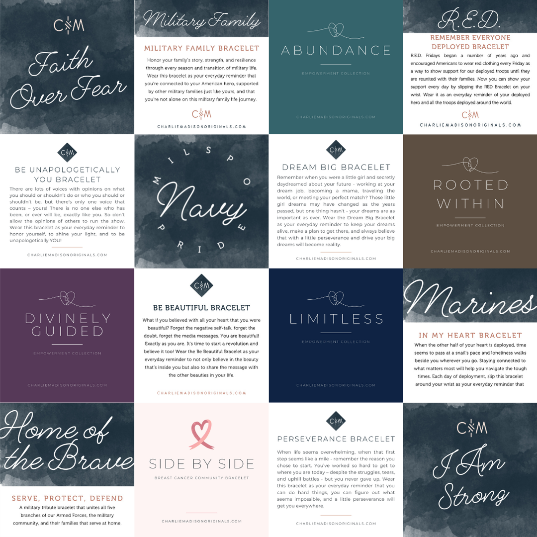 Founded by a veteran military spouse and named after her daughters, Charliemadison Originals is a mother-daughter team with a heart for collaboration and community. We are passionate about empowering, inspiring, and uplifting women through jewelry that tells a story, meaningful partnerships, and a community where you’re always seen, heard, and valued.