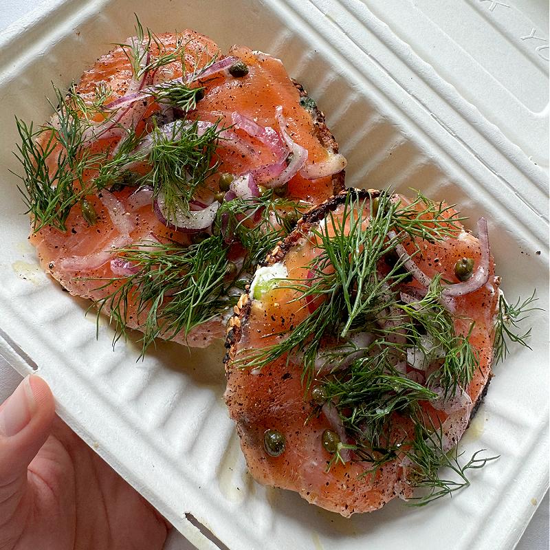 - Apollo Bagel in the West Village - What I loved about this place was there limited menu of bagel and topping options. I ended up getting their everything bagel with cream cheese, lox, and a bunch of toppings. and loved everything about it. The only downside was this bagel being extremely overpriced (which that is New York for you) and waiting in a line for about 30 minutes but it was well worth the wait. This apparently was a brand new location hence the reason for such a long line.
