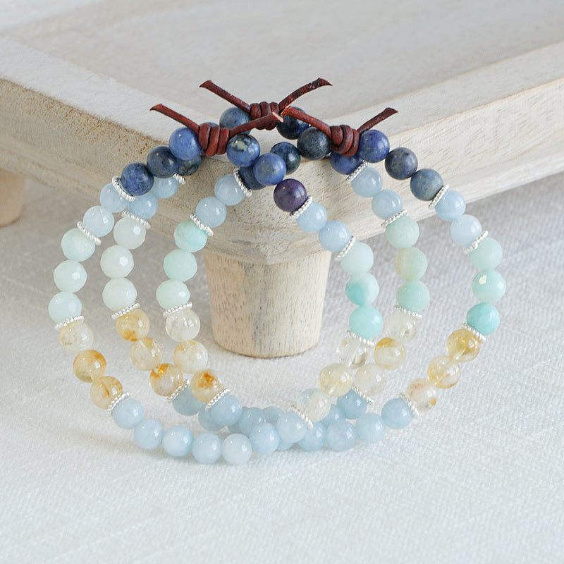 • Gemstones: 6mm Dumortierite, pale blue Jade, Amazonite, and Citrine