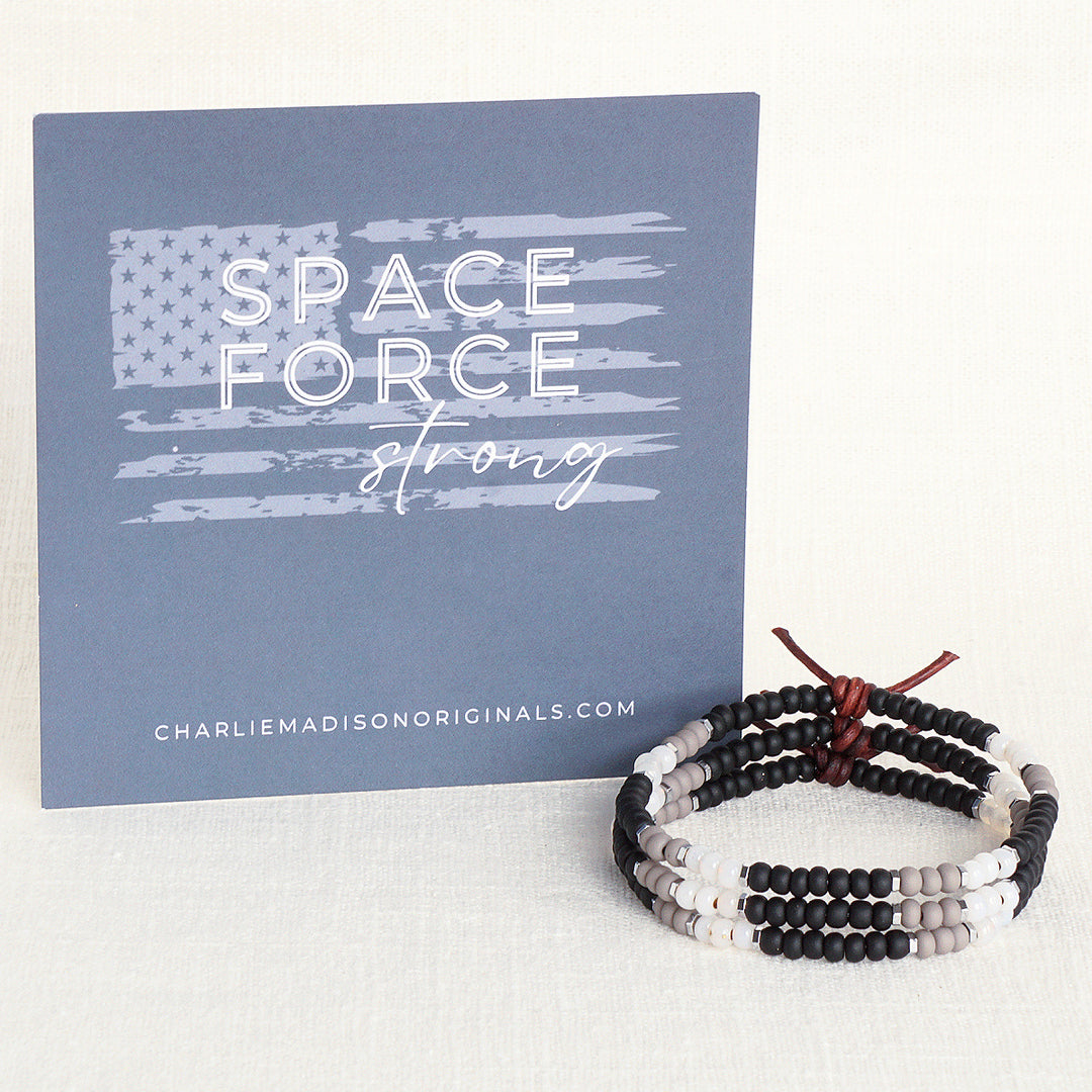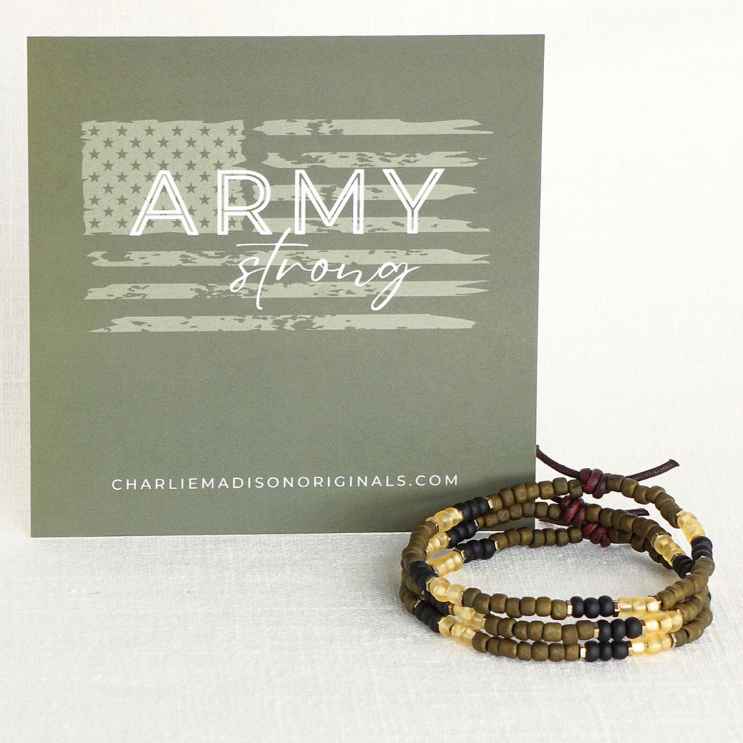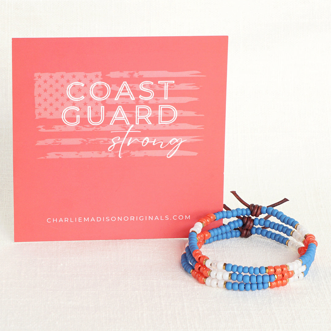 Show your branch pride with the Military Branch Strong Collection. Made with glass seed beads in colors that are inspired by each branch of the military - they are light on your wrist, easily stackable, and make the perfect gift for family, military spouses and moms, or for the next Army-Navy game. Choose from Air Force, Army, Coast Guard, Marine Corps, Navy, and Space Force.