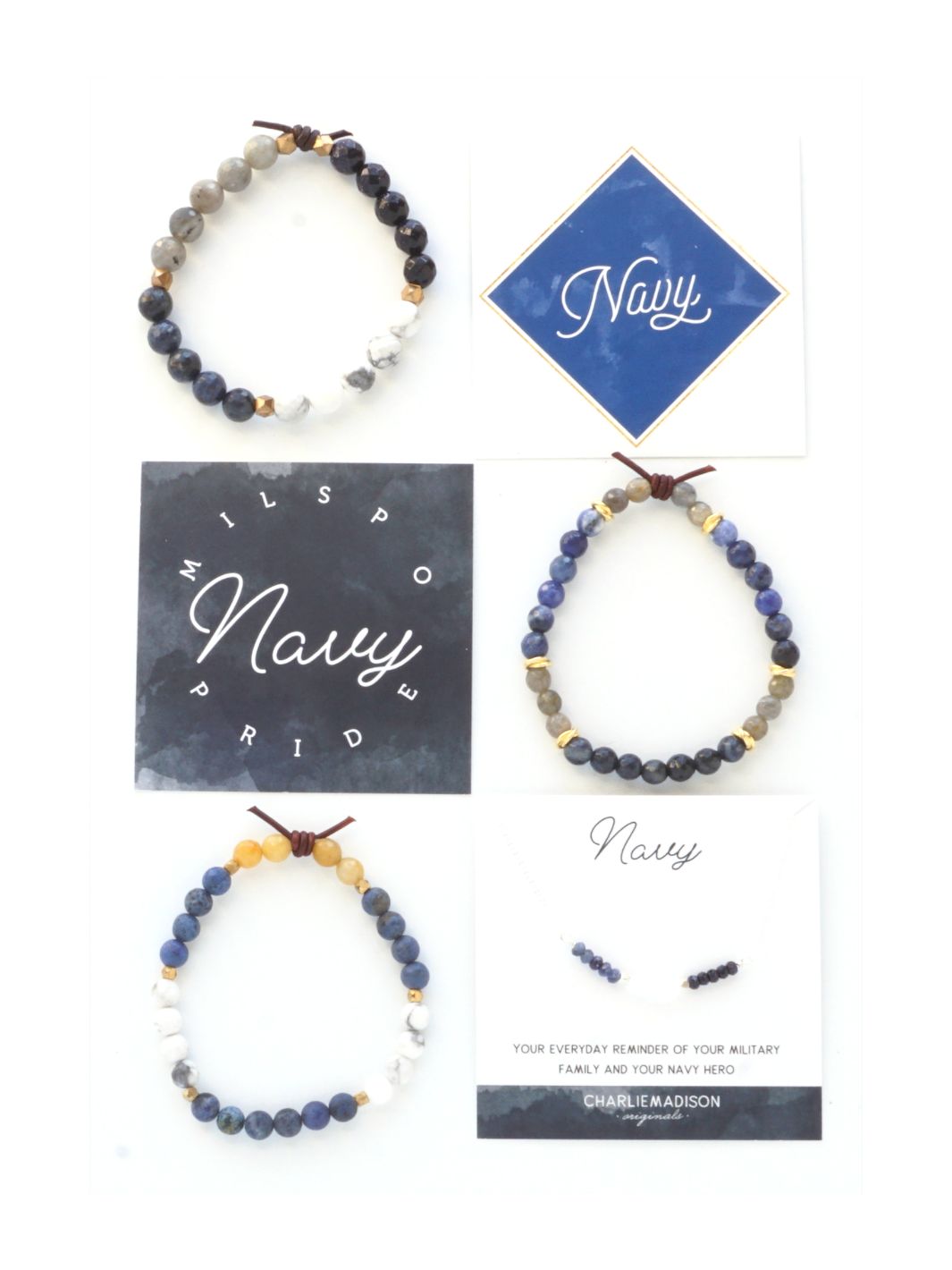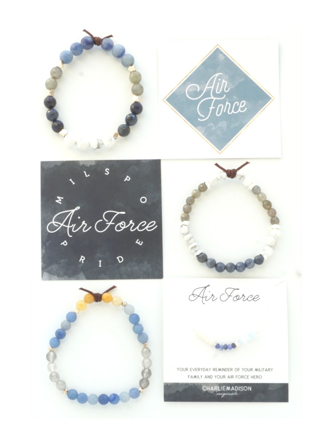 I will say, it wasn’t easy to capture the spirit of each military branch on a string of gemstones because decades of history, sacrifice, and deep pride are not things you can see, but are only things carried in your heart. The inspiration came from the colors of each military seal and branch uniform, and the gemstones are symbolic of those colors. It’s my hope that they’re a constant, treasured reminder of your military hero and an anchor to what’s most important in your life.